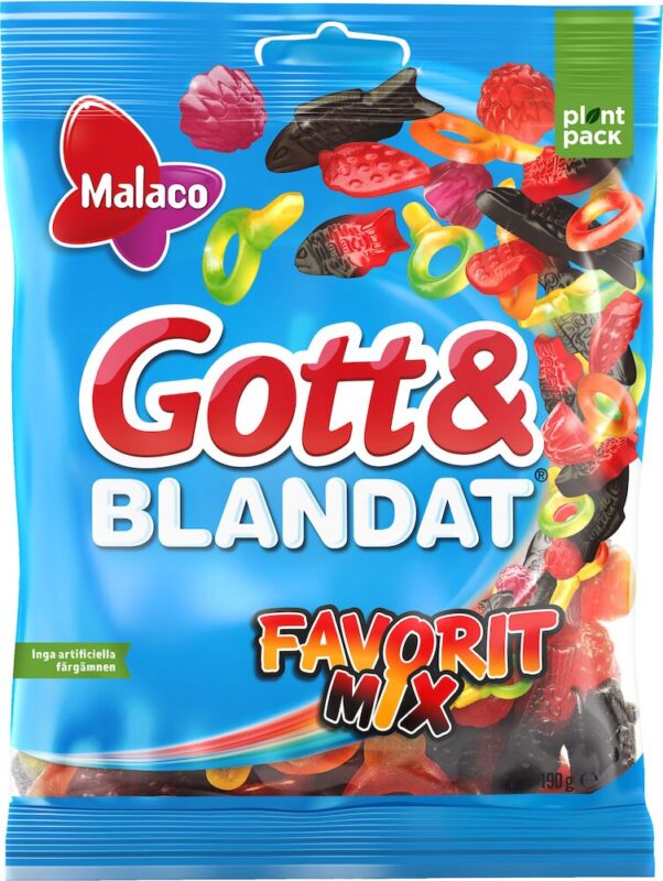 Malaco Gott & Blandat Favoritmix is a delicious mix of fruit and berry wine gums and salty liquorice familiar from pick & mix.