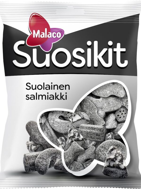 Suosikit Salmiakki is a delicious assortment for anyone one who loves black candy: strong, salt and sugar-coated salted liquorice and liquorice candy.